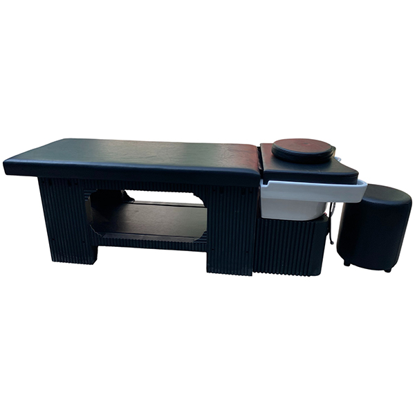 Phần đệm ngồi và tựa lưng được bọc da simili chất lượng cao, mềm mại, thoáng khí, chống thấm nước và dễ dàng lau sạch bằng khăn ẩm. Thiết kế dạng “ghế dài” giúp khách hàng nằm thư giãn thoải mái trong suốt quá trình gội, đồng thời có thể dùng làm ghế chờ khi không cần gội đầu.